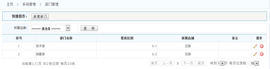 3.部門列表:在列表中的操作一欄 可以對該部門進(jìn)行編輯或者是刪除